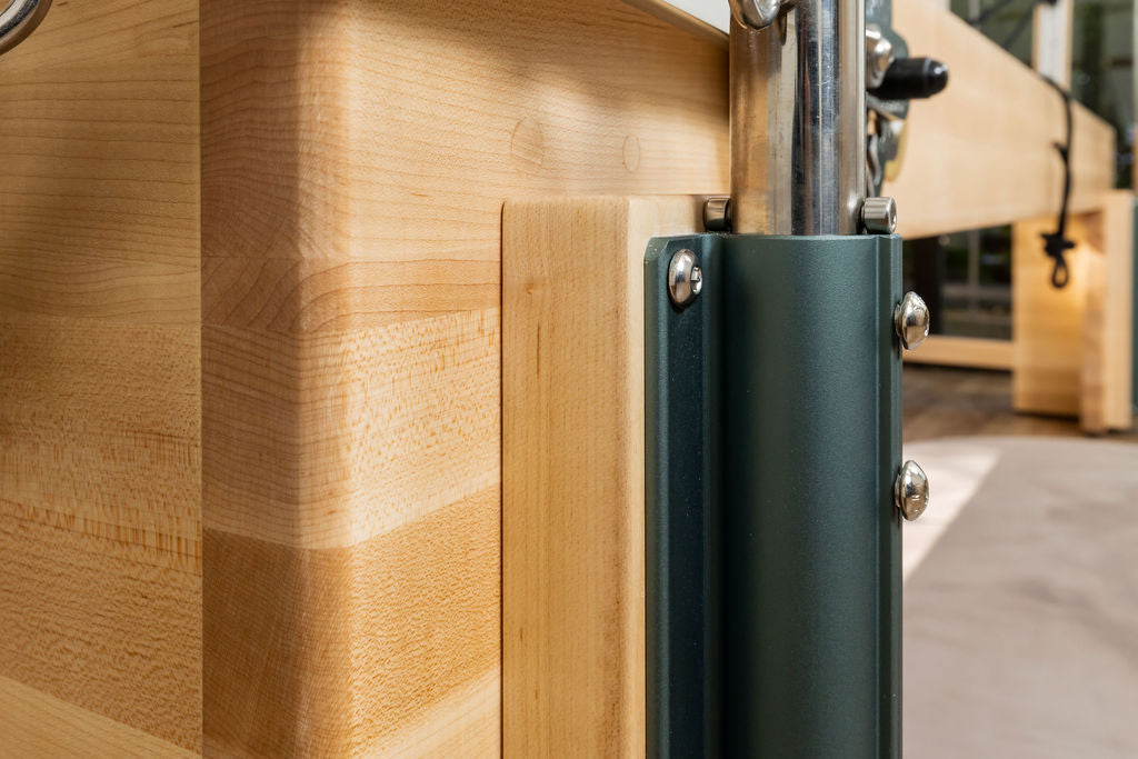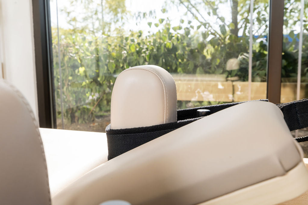 The Napolie Plus Clinical is the latest model in the Napolie line. It’s built with thicker custom maple wood and features a more cushioned carriage designed especially for greater comfort—ideal for individuals with back pain or those needing extra support. The legs stand at 22 inches high, making it one of the most ergonomic and accessible Cadillac reformers available.