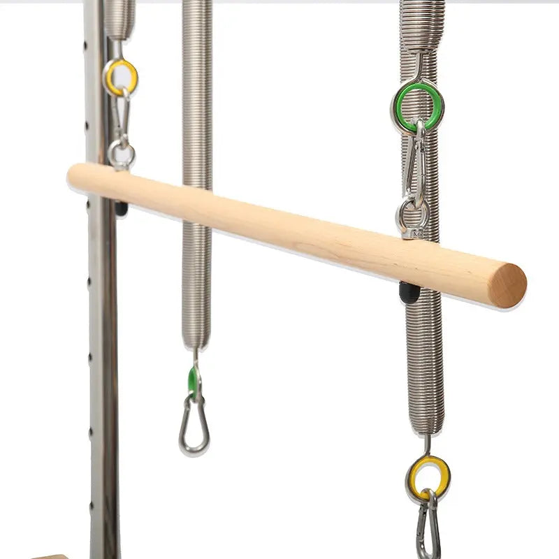 Pilates Springs: The springs are different colors and each color has a different resistance, there are 16 springs in total, 6 in the bracket, 8 in the tower and 2 in the cage.