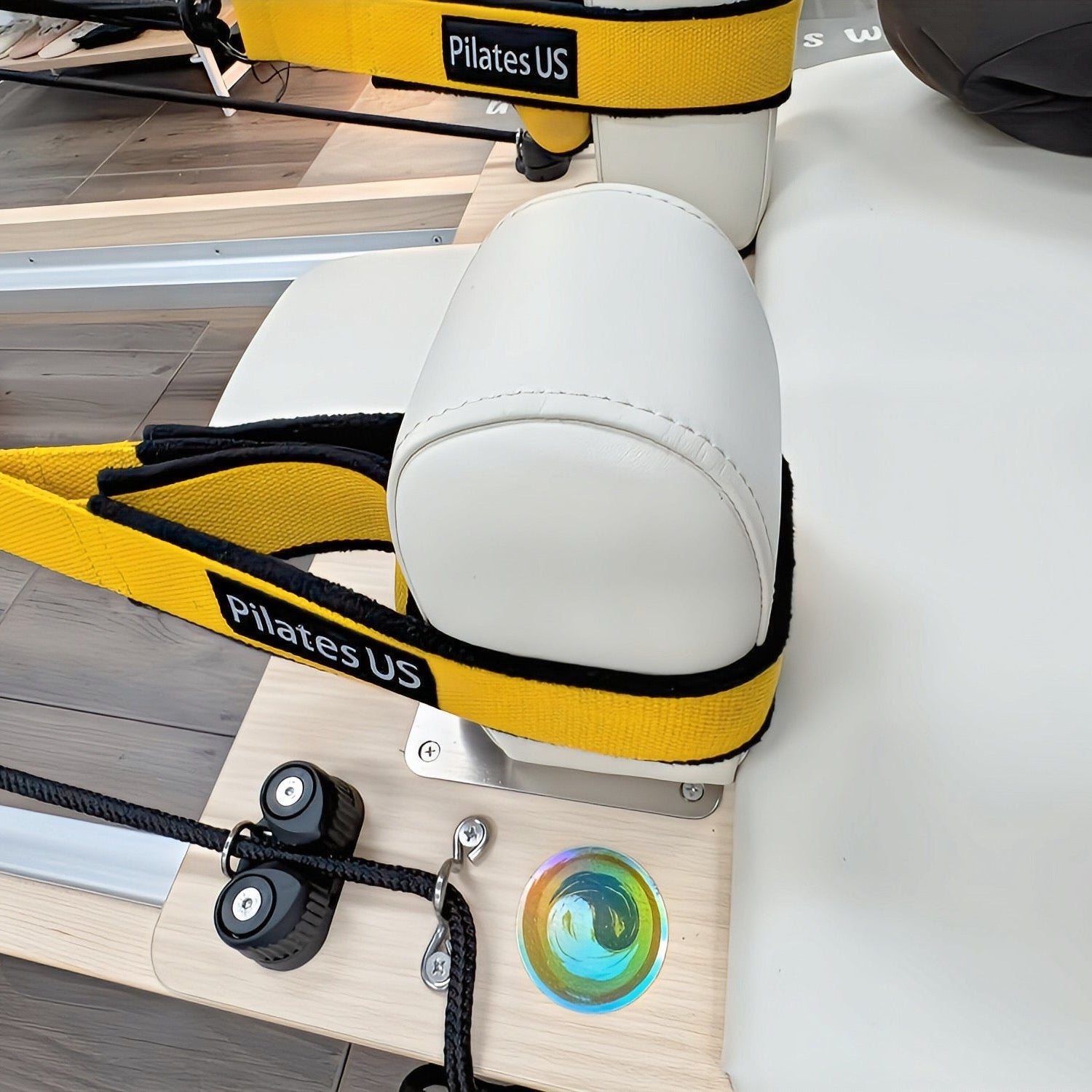 The reformer frame is solid white maple wood and the slide board moves smoothly on the carriage.