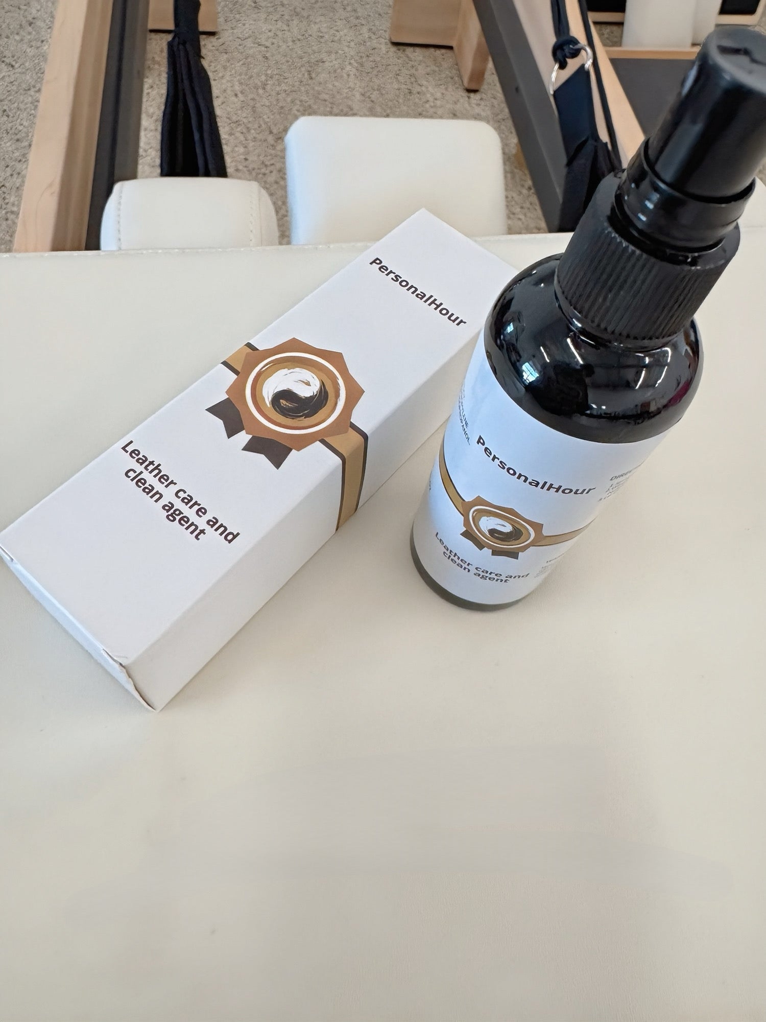 Extend the life of your Pilates reformer with our Pilates Reformer Leather Care – Cleaning, Sanitizing & Protection (8 oz) — a premium, all-in-one solution specially formulated for PersonalHour reformers. Designed with both performance and safety in mind, this powerful yet gentle cleaner is crafted from pure natural ingredients, making it safe for regular use on reformer upholstery, even during active Pilates sessions.